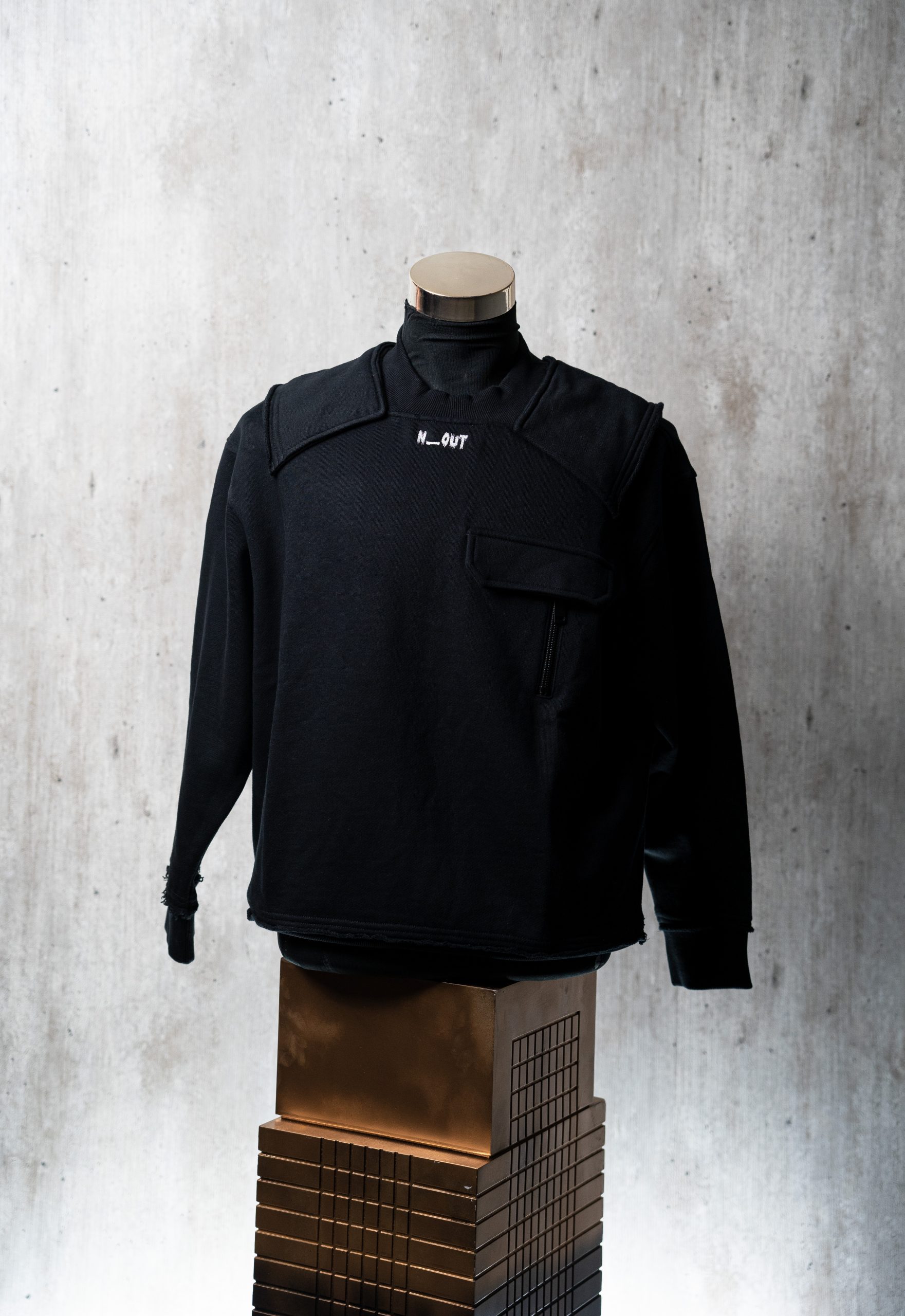 N_OUT Black Sweater with left zip